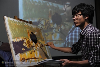 美术报邀请艾鹏老师做教师进修讲课时的示范